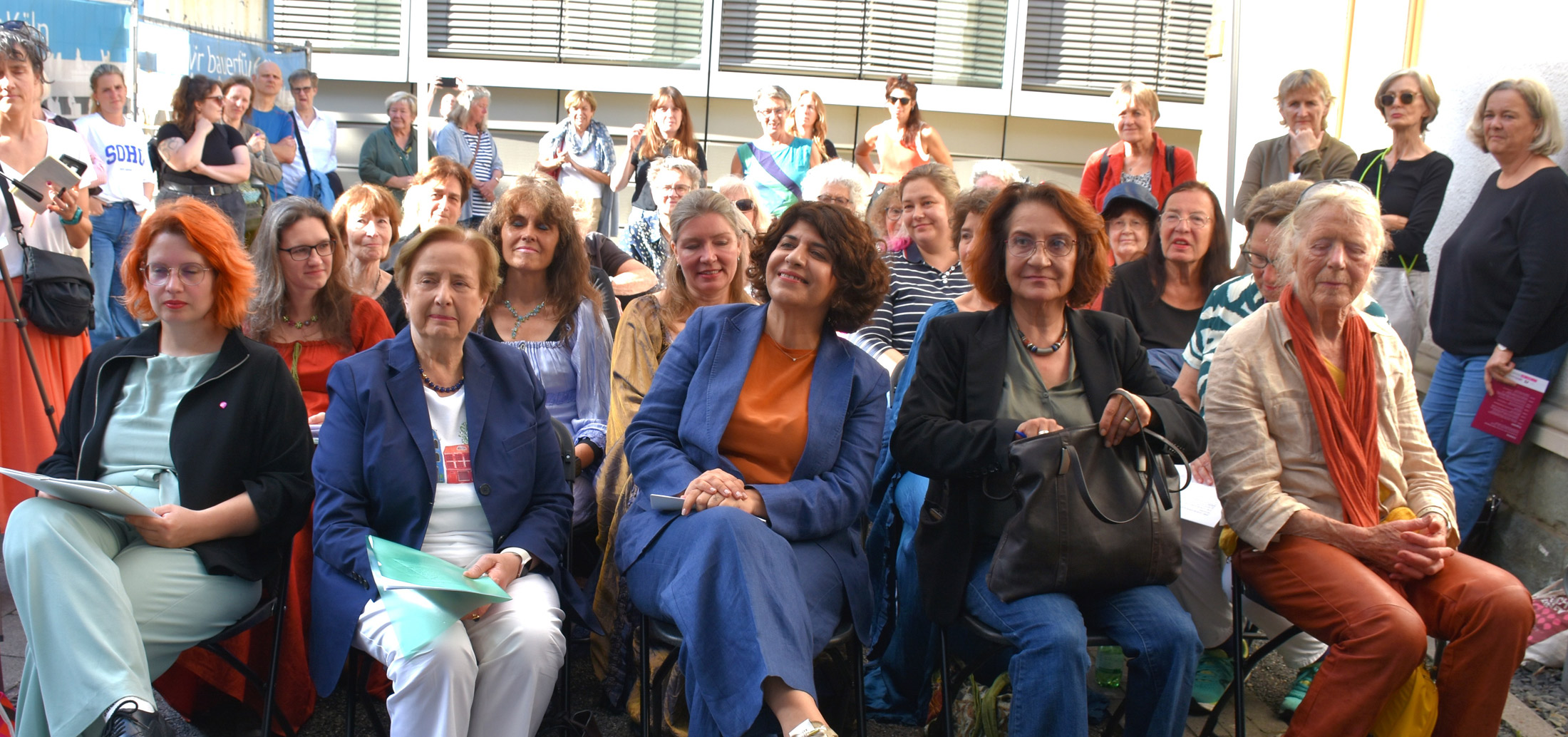 Programm von der VeranstaltungDas Publikum – ca. 50 Frauen und einige Männer waren gekommen – würdigte die Veranstaltung mit Applaus und anerkennenden Kommentaren. Im September soll die Stele aufgebaut werden. Dann wird dieser FrauenOrt jederzeit zugängig sein und mitten in der Innenstadt zu einer Erholungspause einladen.