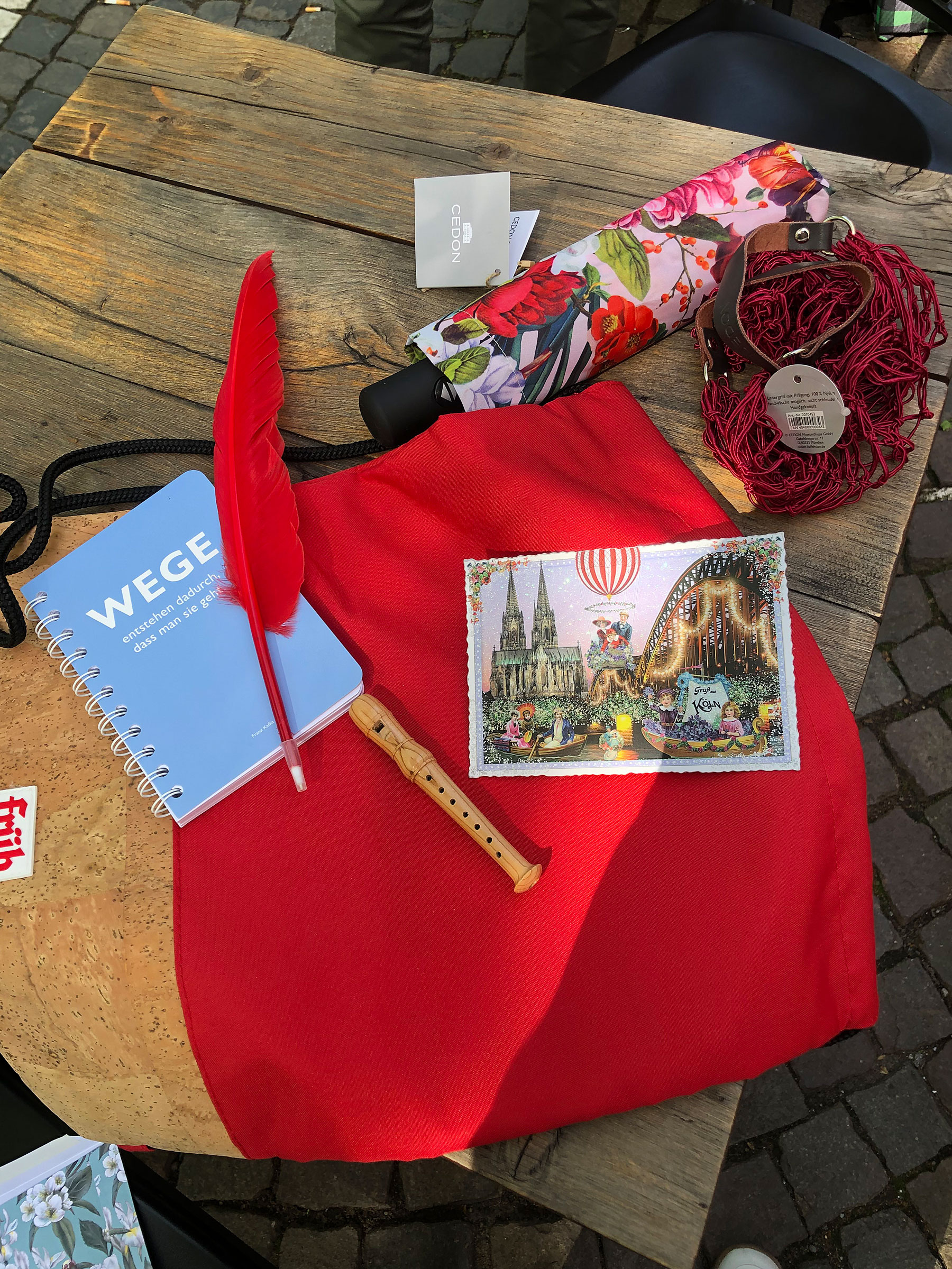 Wir gratulierten unseren Kooperationspartnerinnen zu diesem beeindruckenden Jubiläum mit einem kleinen Survival-Rucksack für Stadtrundgänge.