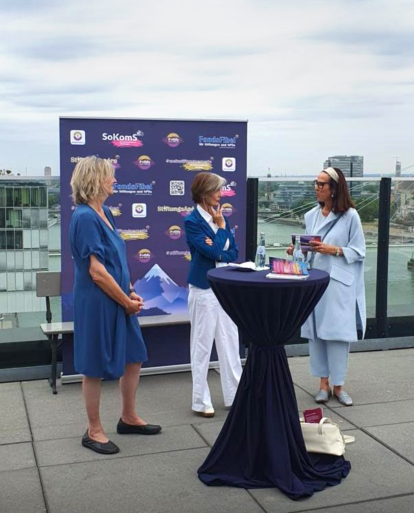Am 26.8.25 war die Stiftung Frauen*leben in Köln zum StiftungsApéro www.stiftungsmarktplatz.eu auf der Dachterrasse der Kranhäuser im Rheinauhafen eingeladen. Der StiftungsApéro ist eine bundesweite Vernetzungsplattform, die Stiftungsverantwortliche, Stiftungsexpert*innen und Stiftungen zu einem Ideenaustausch und zu gegenseitigem Support zusammenbringt. Anne Gutzmann konnte unsere noch junge Stiftung dort gut präsentieren, und wir haben für unser bisheriges Wirken große Anerkennung erhalten.